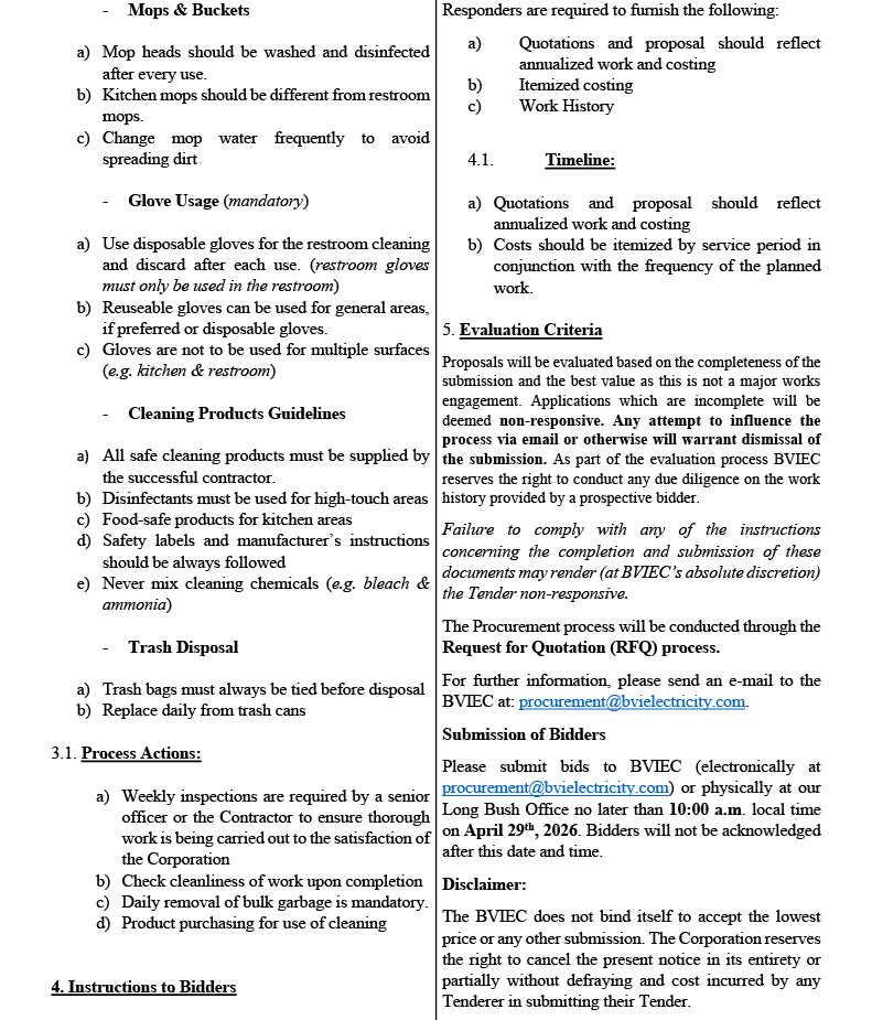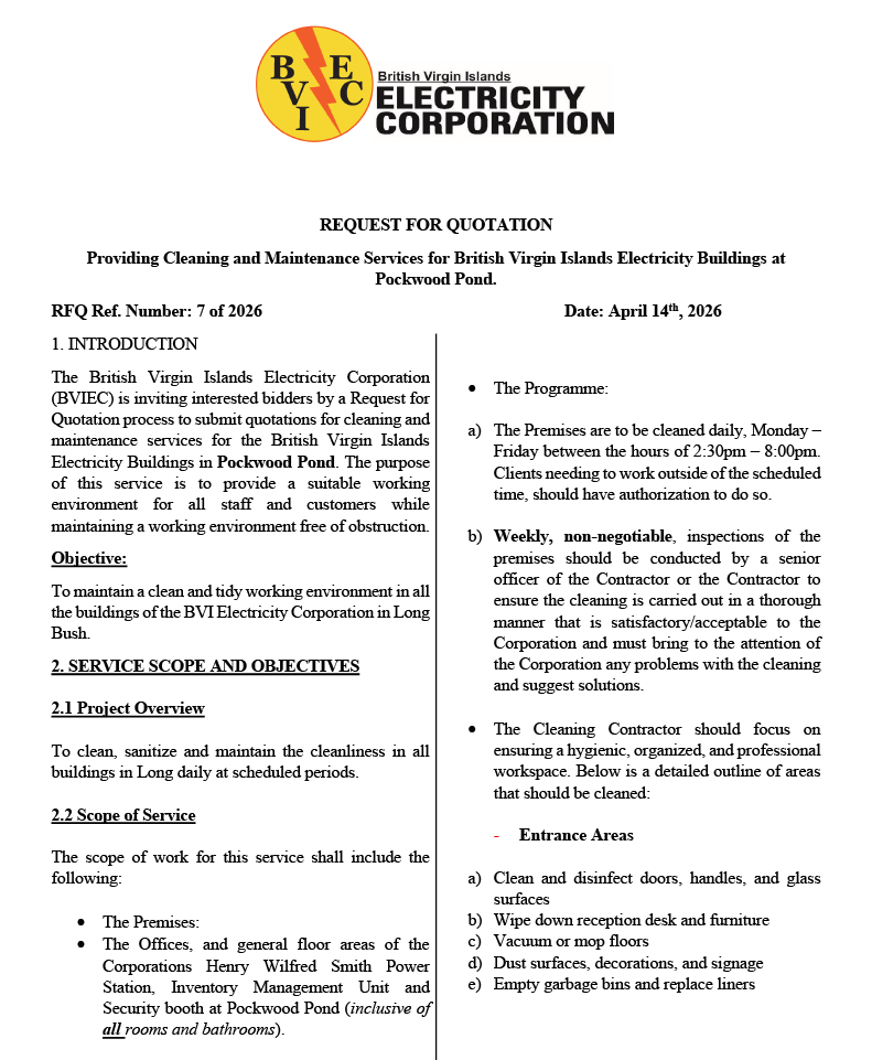 RFQ #7: PROVIDING CLEANING AND MAINTENANCE SERVICES FOR BVIEC – PWP